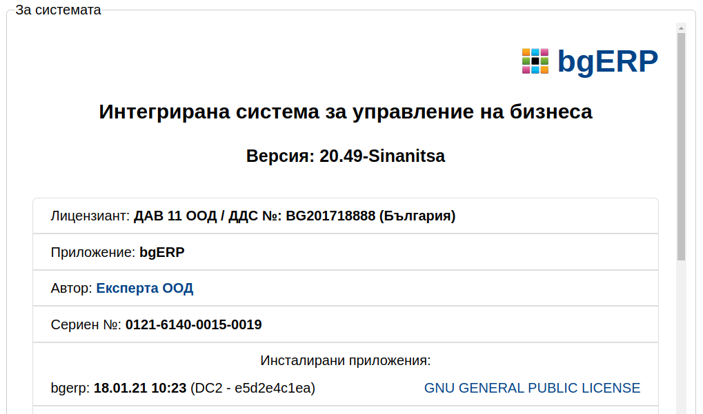 с Проект "Внедряване на bgERP - интегрирана система за управление на бизнеса".